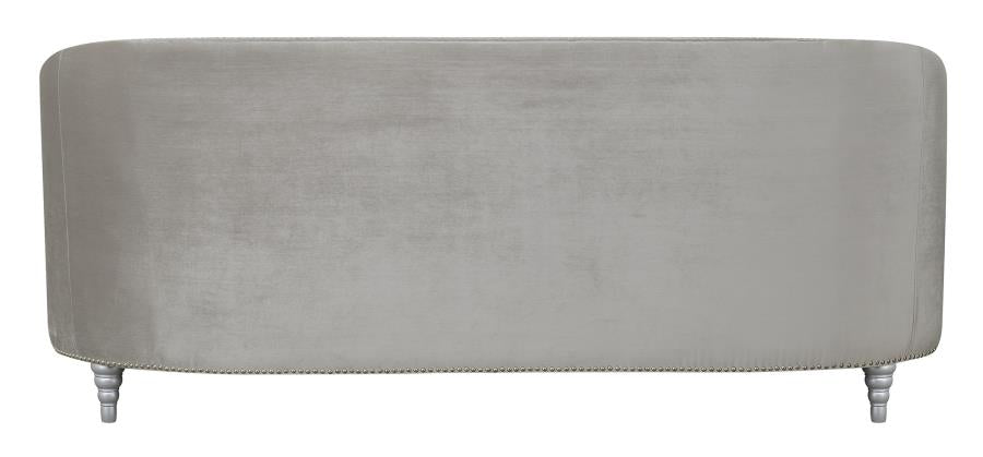 This stationary sofa is as stylish as it is functional. It features an appealing button-tufted design that imparts elegance. Seat back leads to a wraparound armrest that surrounds you in comfort. Extra thick cushions ensure hours of relaxed contentment. It comes wrapped in opulent grey material that will steal the show in your living room.