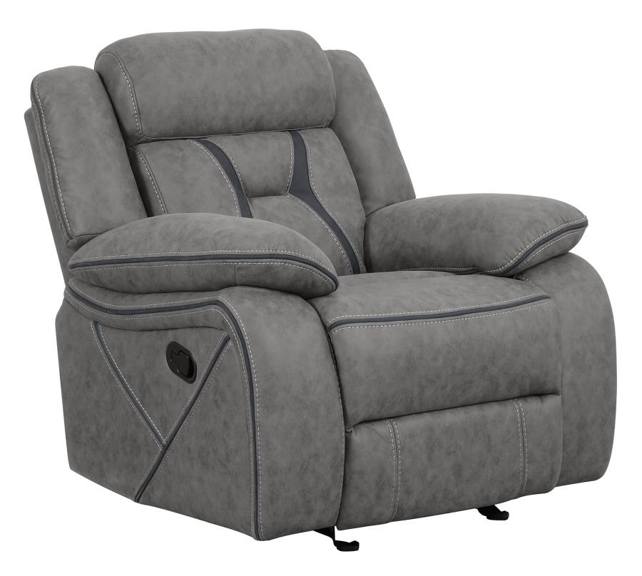 Crafted for comfort and durability, this glider recliner is an instant living room upgrade. Available in multiple colors, it offers a variety of attractive options to match your decor. The thick, plush padding of its seat, back, and armrests offers exquisite softness and comfortable support. Its soft upholstery boasts a subtle, stitched design, giving it a stylish look. This recliner is crafted from quality materials for the ultimate lounging experience.
