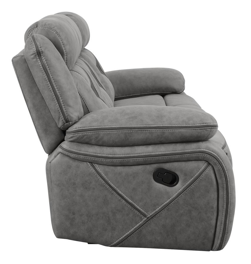 Relax, recline, and revel in the luxurious comfort of this motion sofa. With a chic and modern design, it's ideal for a contemporary living room. Its upholstery boasts a soft, smooth texture that feels lovely against the skin. Its plush seats and thick, padded headrests offer a cozy foundation to rest and relax. Complete with striking, stitched accents, it lends an inviting element of style to any modern home.