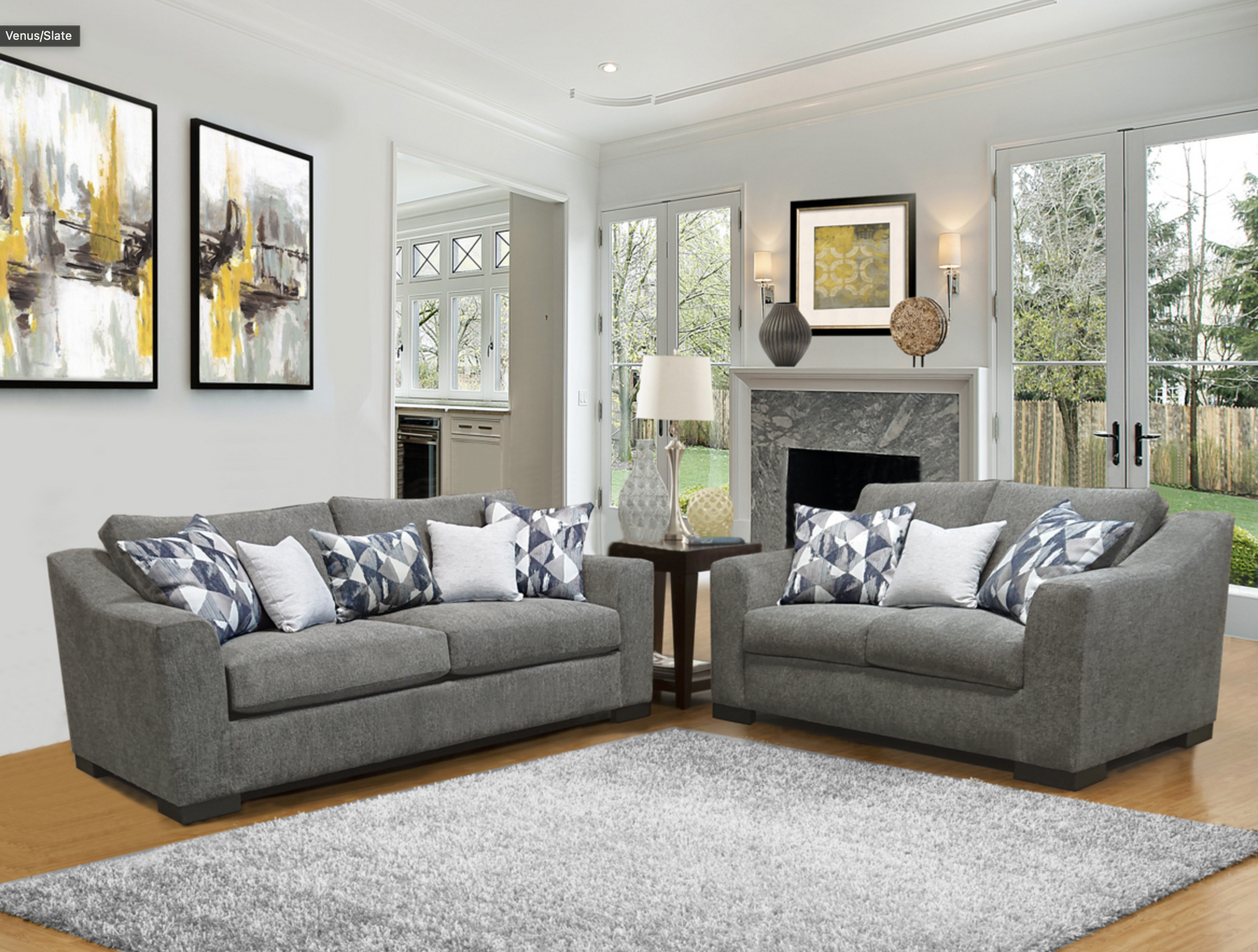 Chenille. Innovative Waffle Cushion Seating. Detached Pillow Backs. Reversible Cushions & Pillows. Accent Wood Legs.