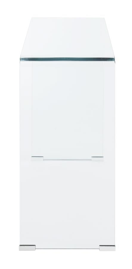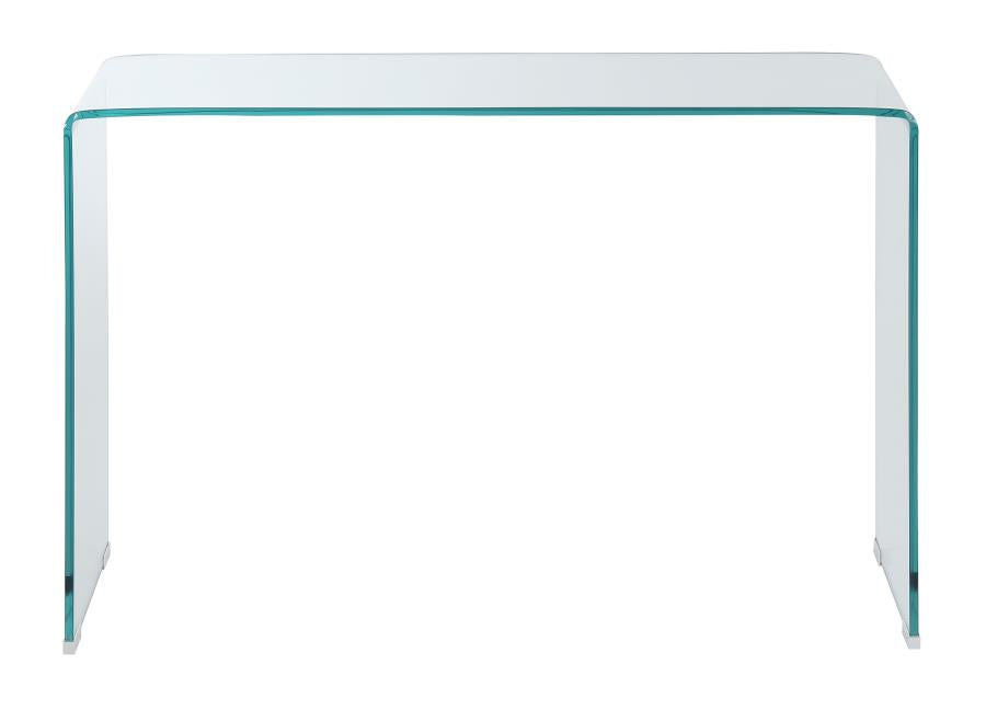 This impressive sofa table comes in a contemporary, understated style that's perfect for the home. The table features a clear, single-piece design with a rectangular table top. Customize the look with a decorative vase or a photo and a small collection of books. Instead of a base, there's an open space design made for a large potted plant or small lamp directly on the floor for a touch of intimacy. With this table, a living room or den are transformed with a modern appeal that's sure to please.
