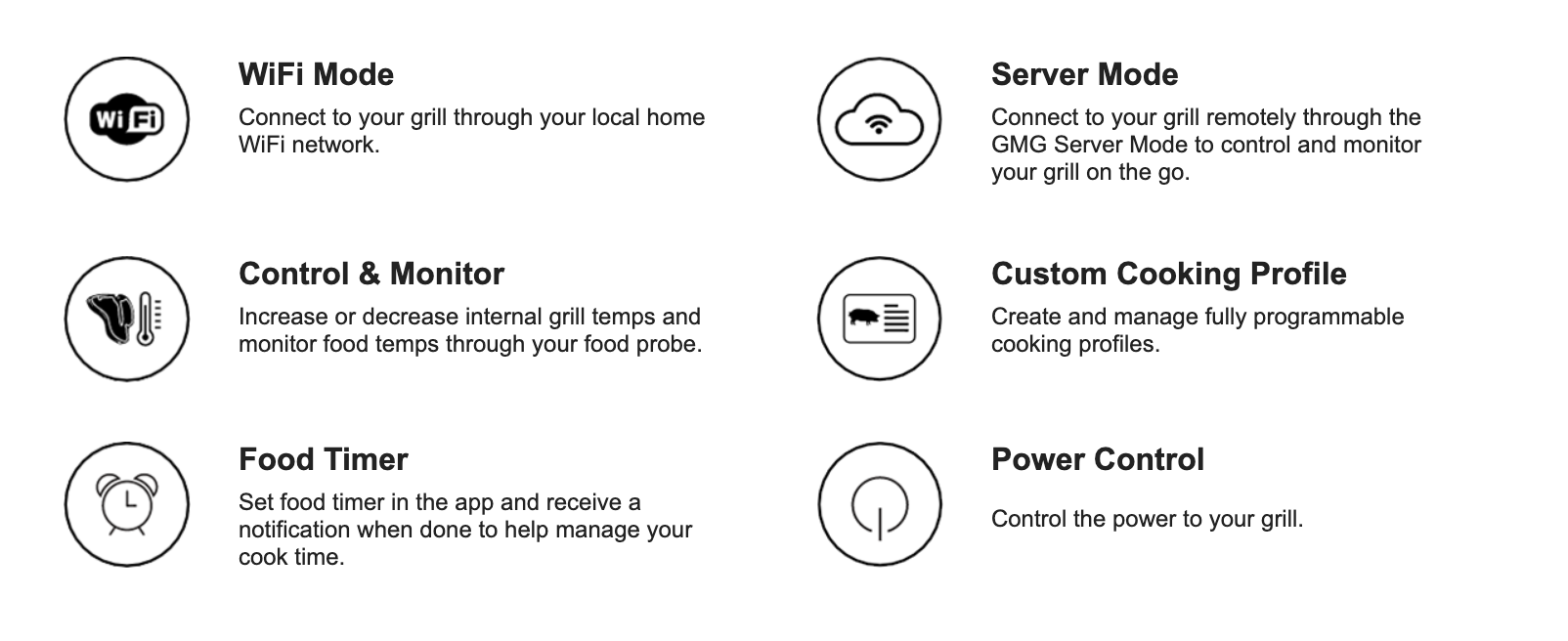 Control and monitor your grill from your couch or on-the-go with GMG Smart Control. Adjust your smoke and grill temp from 150°F to 550°F with 5° increment control. Adjust and monitor your food temp from your phone with the GMG App. Grill smarter, eat better!